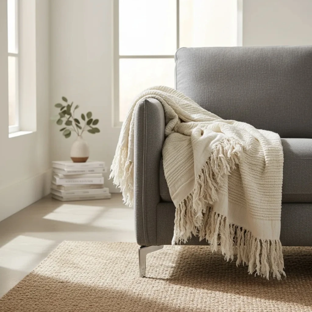 Sumá calidez y estilo a tus espacios con nuestra manta Rodas, tejida con elaborada con materiales de alta calidad, ofreciendo una textura suave y agradable al tacto.